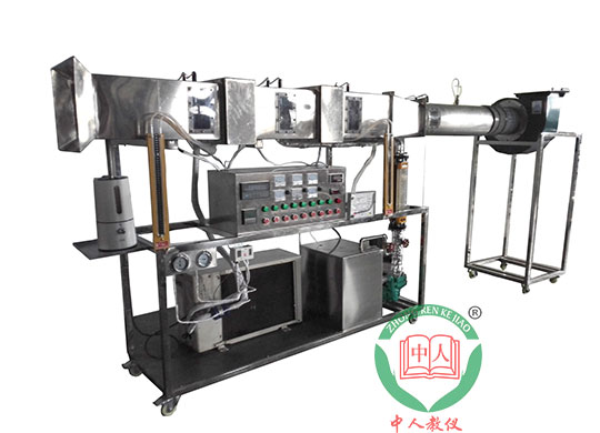 制冷壓縮機組,冷凝器,蒸發(fā)器,離心風機,電熱加濕裝置,一次、二次加熱裝置,數(shù)顯溫度儀表,壓差計(±100Pa),超壓保護裝置,壓力表(-0.1-2.5 Mpa),轉子流量計,熱電偶,電流表,電壓表,風量測量裝置(笛形管),不銹鋼臺架及控制柜等。