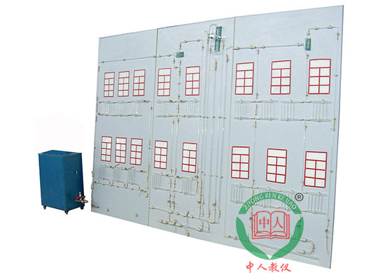 4、模擬供暖鍋爐 ;給水箱;集氣罐;高位膨脹水箱;模擬房間墻面;散熱器;模擬采暖散熱器片、采暖供水干支管道、回水干支管道、水平式單管順流式系統;水平式單管跨越式系統;垂直式單管順流式系統; 垂直式單管跨越式系統;雙管系統。