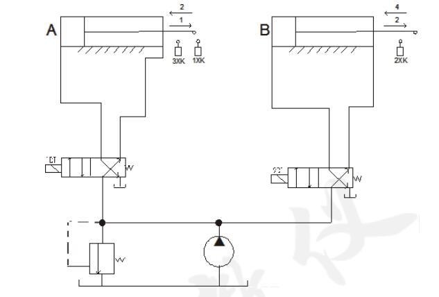 采用電器行程開關的順序動作回路,各缸順序由電氣線路保證改變電氣線路即可改變順序動作,并且調整行程,也比較方便。但這種回路的可靠性取決于電器元件,電氣線路比較復雜。