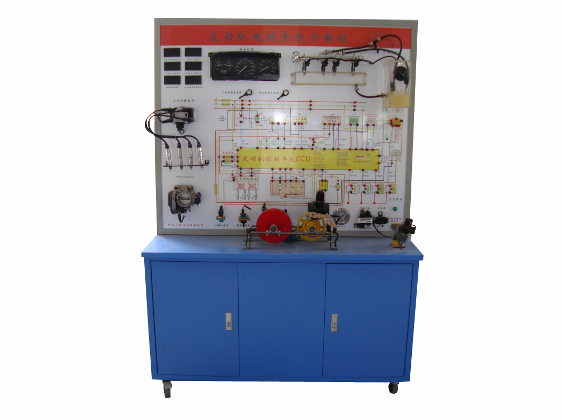 發(fā)動機電控單元、發(fā)動機各類傳感器、發(fā)動機各類執(zhí)行器、檢測端子、故障設(shè)置系統(tǒng)、大容量蓄電池或12V開關(guān)電源、大型彩色噴繪電路原理圖、控制面板、可移動臺架、使用說明書等。