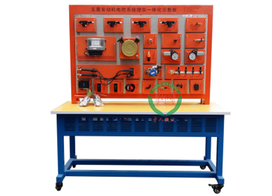 4.示教板上安裝有燃油箱,燃油量傳感器,發動機控制單元,組合儀表,油泵繼電器,點火開關,診斷座,保險盒,安裝噴油嘴和量杯,面板上安裝有檢測端子,可直接在面板上檢測發動機控制系統電路元件的電信號。
