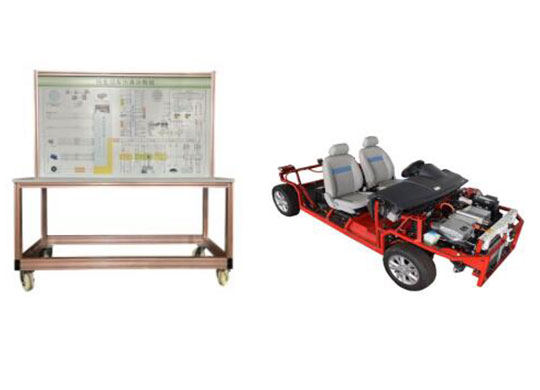 驅動電機、電機控制器、DC/DC轉換器、主保險盒、車載充電器、組合儀表、電池組、掛檔桿、故障設置和排除系統、原車電路原理圖及檢測端子、大容量蓄電池、加速機構、控制臺、可移動臺架、臺架電源總開關、診斷座、散熱系統、數字顯示表、帶鎖止的萬向腳輪等。
