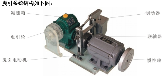 曳引機由電動機、制動器、聯軸器、減速箱、曳引輪、機架和導向輪及附屬盤車手輪等組成。