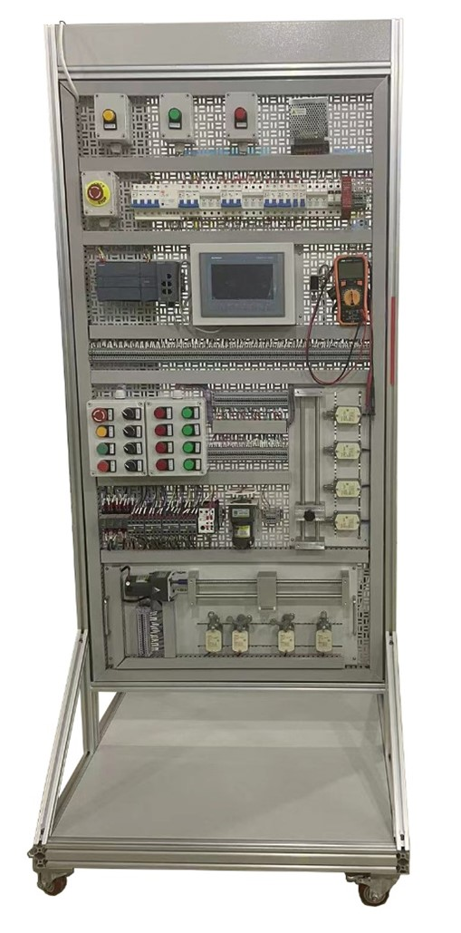 裝置由標準控制屏、電源系統、CPU1214C DC/DC/DC、SINAMICSG120、KTP 700基本型彩色觸摸屏、仿真裝置、繼電接觸控制單元、自動往返實訓模型、按鈕及指示燈單元等組成,所有單元模塊均安裝在標準控制屏上。可培養學生掌握PLC原理、編程方法、編程技巧、變頻調速、觸摸屏技術、交流電機控制技術、Profinet工業以太網技術,可滿足各類型學校、企業培訓中心現代控制技術工程應用課程的實訓的教學及電工相關內容的培訓考評。