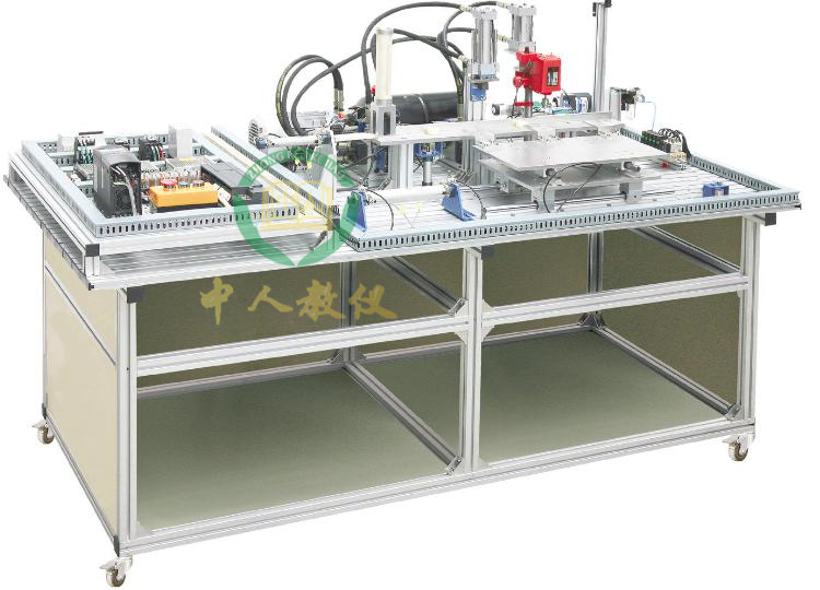 采用帶T形槽的工業鋁合金型材操作面板,便于拆裝各種自動化機構及電氣、液壓、氣動部件。下設大吊柜一個,便于放置各種資料及工具。