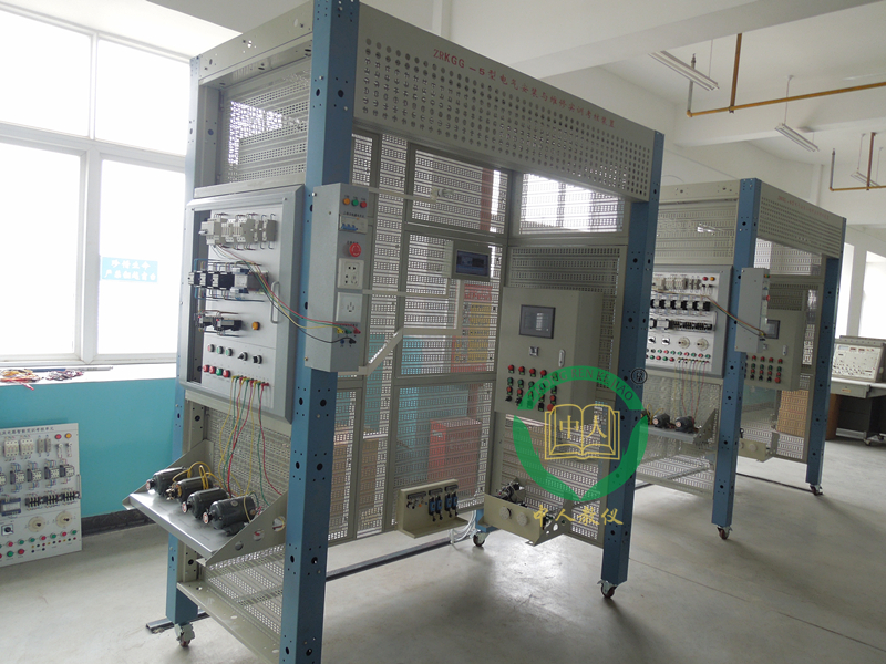 可進(jìn)行電工安裝。如橋架安裝、PVC管安裝、吊燈、白熾燈座、日光燈、開關(guān)、插座、控制箱、配電箱等,包含有交流異步電動機(jī)、直流電動機(jī)、步進(jìn)電機(jī)、伺服電機(jī)、溫度控制器、電偶、PLC、變頻器觸摸屏等控制與受控對象。每個操作組配套一可移動式工具車和元件柜,便于對元件的保管和安裝施工。從根本上解決了學(xué)校在普通墻面上進(jìn)行的安裝培訓(xùn)的使用不方便、實(shí)訓(xùn)范圍窄的問題。
