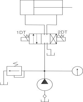 當1DT、2DT電磁鐵都斷電時,閥芯處于中間位置,液壓缸的工作油口被封閉。由于缸的兩腔都充滿了油液,而油液又是不可壓縮的,所以就可使活塞鎖緊在任何行程位置。這種閉鎖回路由于換向閥密封性差,存在泄露,故鎖緊效果較差,但結構簡單。