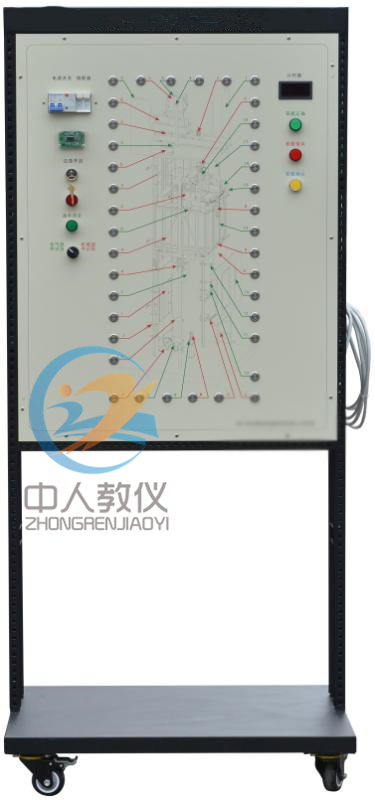 2、實訓臺主體部分采用全鋼結構,鋼板亞光噴塑,美觀耐用,臺面采用鋁塑板印制而成,整個實訓臺由漏電保護開關、熔斷器、開關電源、數顯計時器、智能刷卡啟動電路板、智能考核電路套件、各種按鈕和安全接線柱等組成。