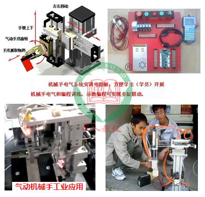 配套的工程教學內容:沖床取件送料機械手的構成,步進電機、氣動元件選擇,機械結構組合和裝配,編程方法,氣動元件控制,電氣控制箱設計安裝等。