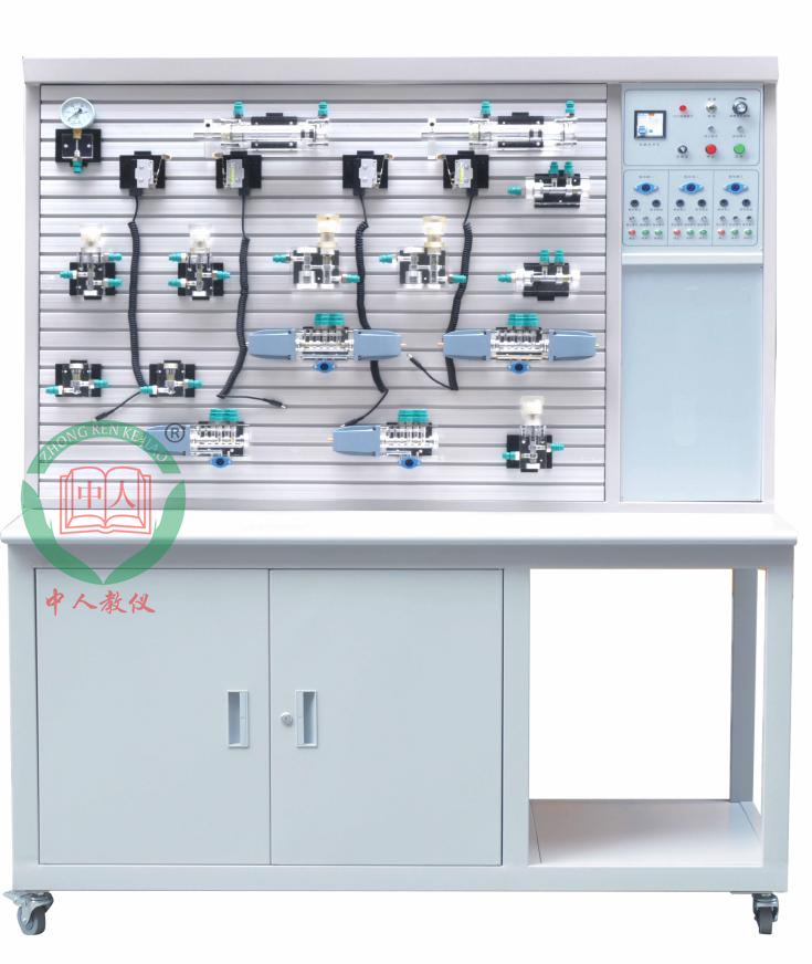 2、實訓桌、實訓臺為鐵質雙層亞光密紋噴塑結構,實訓桌柜內存放液壓元件等。