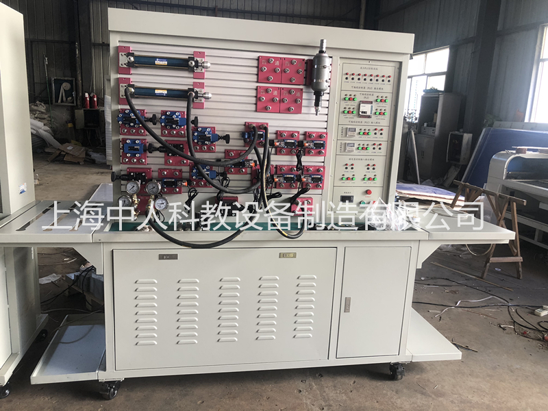 該實驗臺是根據《液壓氣動傳動技術與實訓》、《氣動控制技術》等通用教材設計而成,集可編程控制器和工業氣動元件、執行模塊為一體,除可進行常規的氣動基本控制回路實驗外,還可以進行模擬氣動控制技術應用實驗、氣動技術課程設計。采用PLC控制方式,可從學習簡單的PLC指導編程、梯形圖編程,深入到PLC控制的應用,可與計算機通訊、在線調試等實驗功能,能完美結合氣動技術和電氣PLC控制技術,適用電工、機電一體化等專業實訓考核。
