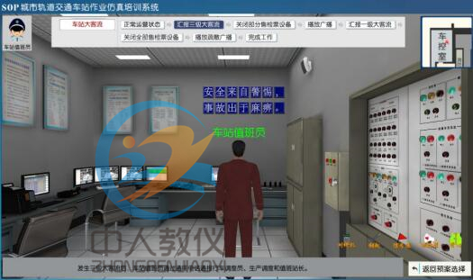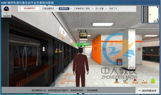 教學系統在構建的虛擬的車站中,提供車站站長、值班員、站務員、票務員、設備員等崗位的非正常情況下的應急處置教學功能。