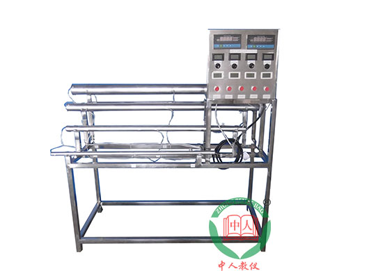 不同長度和直徑的電鍍紫銅管四根,管內設置加熱器,固體調壓模塊無機調節加熱,測溫傳感器,電功率測試數顯儀表,萬能信號輸入巡檢儀顯示溫度,各管配有溫度控制儀表,不銹鋼臺架及控制屏等。