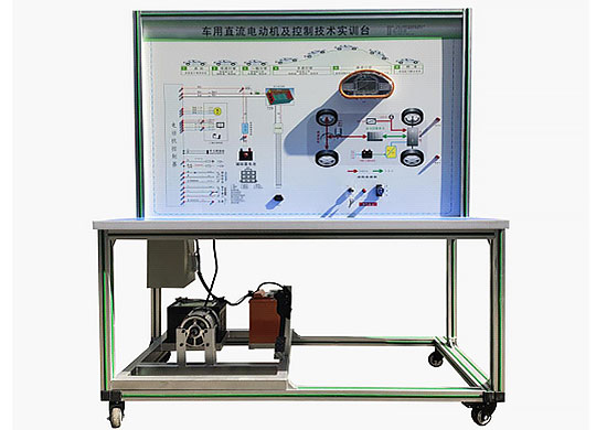 檢測控制面板(裝有各種檢測端子,1448×940mm彩色電路圖和工作原理示意圖)、組合儀表、點火開關、電機控制器、車載充電器與充電接口、DC-DC轉換器、鋰動力電池組、電動車電機(直流無刷電機)、剎車開關、檔位開關、油門控制裝置、大電流繼電器、電源總開關、急停開關、輔助蓄電池(12V45AH)、一體化全鋁合金型材搭建的移動臺架(1500×700×1700mm (帶自鎖腳輪裝置,帶安裝檢測端子的原理面板,面板1448×940mm)、設備操作說明書。