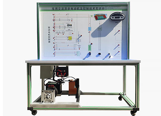 檢測控制面板(裝有各種檢測端子,1448×940mm彩色電路圖和工作原理示意圖)、組合儀表、點火開關、電機控制器、車載充電器與充電接口、DC-DC轉換器、鋰動力電池組、電動車電機(交流異步電動機)、剎車開關、檔位開關、油門控制裝置、大電流繼電器、電源總開關、急停開關、輔助蓄電池(12V45AH)、一體化全鋁合金型材搭建的移動臺架(1500×700×1700mm (帶自鎖腳輪裝置,帶安裝檢測端子的原理面板,面板1448×940mm)、設備操作說明書。