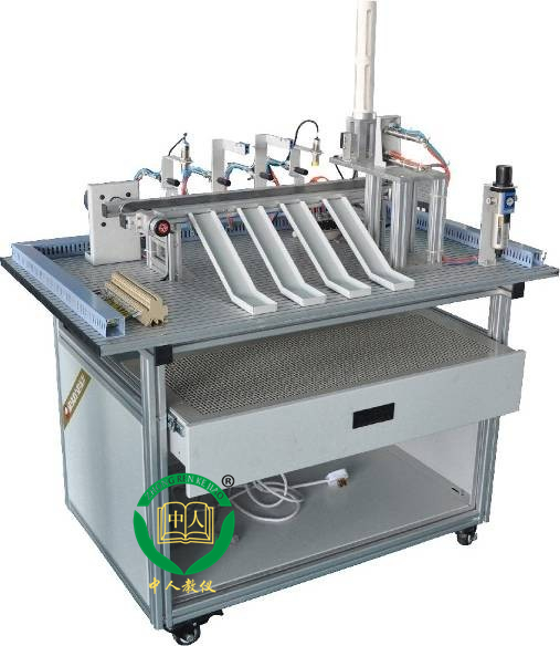 本實驗裝置是依據機電一體化教學的要求而開發的,它涵蓋了PLC技術、氣動技術、傳感器技術、位置控制技術等內容,是實際工業現場生產設備的微縮模型。
