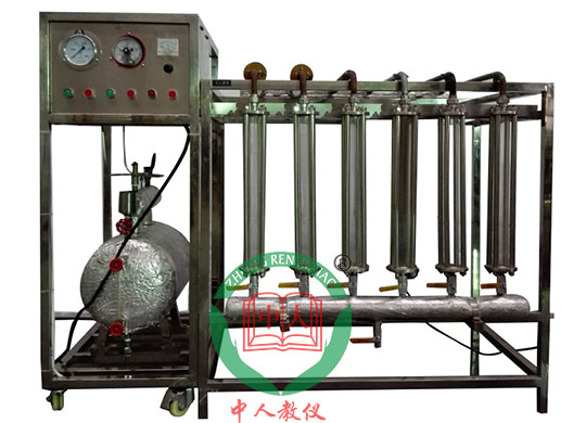 紫銅傳熱管道(銅裸管、涂黑管、翅片管、玻璃絲棉保溫管、鋸末保溫管、鍍鉻管各一組),調節閥門組,蒸汽發生器,熱風幕風機,壓力控制器及溫度保護裝置,不銹鋼臺架及控制屏等。